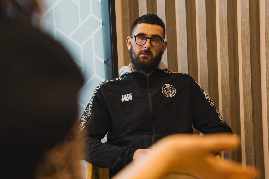 Lors d’une rencontre organisée au sein de l’agence de Poitiers-Biard, Théo Louis (gardien principal de l’équipe N2), Alois Branlard (joueur N2 et U19NAT) et Alexandre Billard (joueur de la section Sport Adapté) ont pu échanger avec les représentants d’Harmonie Mutuelle autour de ce partenariat porteur de sens.